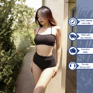 Đồ bơi nữ cao cấp 𝐕𝐈𝐕𝐈𝐀𝐍 dạng hai mảnh lưng cao áo ống - màu Đen - VS206_BL