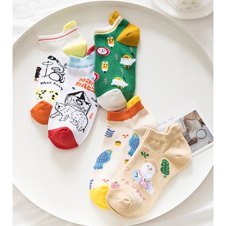 Vớ WAFNHA D469 chất liệu cotton họa tiết hoạt hình dễ thương thời trang cho nữ
