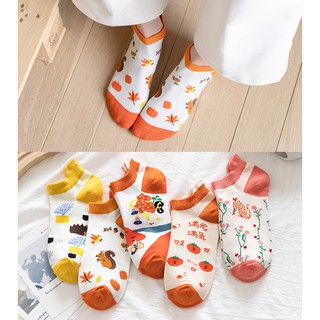 Vớ Mỏng Thoáng Khí Thêu Họa Tiết Mặt Cười Dễ Thương Cho Nữ Kafu D641