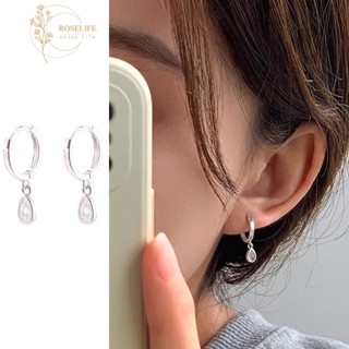 1 Cặp Bông Tai Mạ Bạc 925 Hình Giọt Nước Đính Đá Zircon Phong Cách Hàn Quốc Thời Trang Cho Nữ