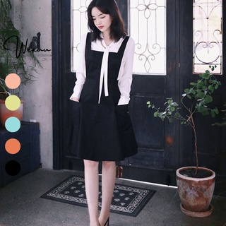 Váy yếm 2 dây thắt nơ eo thiết kế tiểu thư dáng dài xòe ( Chỉ váy yếm) WEXUU -V17