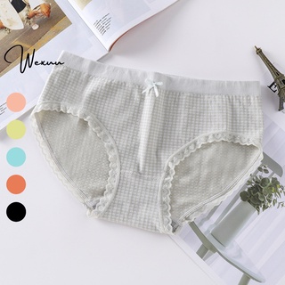 Quần lót nữ ren nhún xuyên thấu WEXUU chất liệu co giãn thoáng khí phối viền hoa đính nơ xinh xắn gợi cảm - QC145