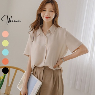 Áo sơ mi nữ cộc tay Wexuu Design, Áo nữ dáng suông chất vải lụa mịn đủ màu chống nhăn mặc thoải mái SM19