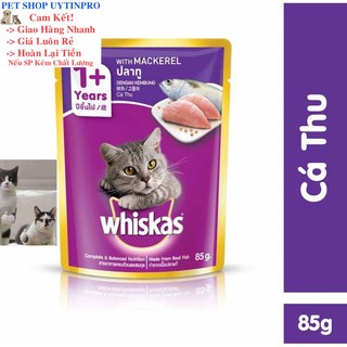 Pate Cho Mèo Lớn, Pate cho mèo con, Whiskas1+ Whiskas junior túi 80g vị Cá Ngừ, Thu, Biển, Saba, Gà, White fish