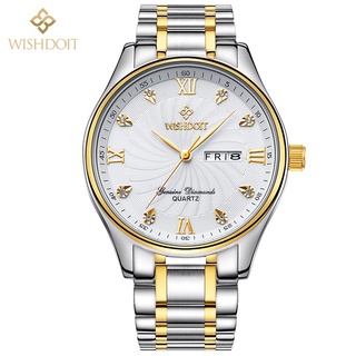 Đồng hồ đeo tay WISHDOIT bằng thép không gỉ màu bạc/ vàng kim chống nước lịch lãm thời trang cho nam