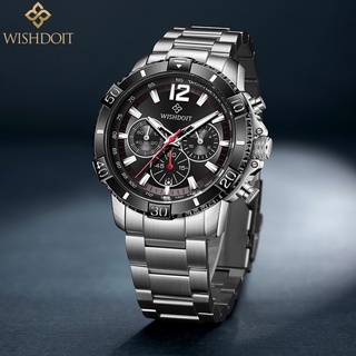 Đồng hồ đeo tay WISHDOIT bằng thép không gỉ chống thấm nước đa chức năng phong cách sang trọng cho nam