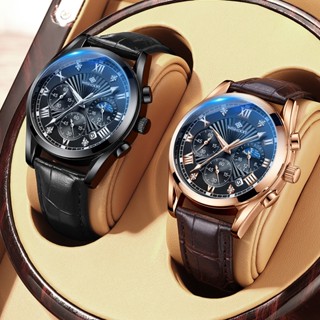 Đồng hồ cơ thể thao WISHDOIT đa năng dây da có 3 mặt nhỏ chống nước chức năng xem lịch cho doanh nhân/học sinh/cặp đôi