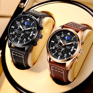 WISHDOIT Đồng hồ quartz chống thấm nước với dây đeo da
