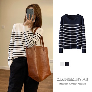 Xiaozhainv Áo len tay dài họa tiết kẻ sọc đơn giản phong cách Hàn Quốc thời trang dành cho nữ