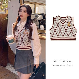 Áo Khoác Xiaozhainv Dệt Kim Không Tay Thêu Hình Chú Gấu Thời Trang Hàn Quốc Cho Nữ