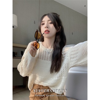 Áo kiểu XIAOZHAINV dáng lửng dệt kim khoét lỗ cổ tròn che nắng thời trang dành cho nữ