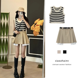 Áo thun không tay cổ chữ U/ Chân váy chữ A Xiaozhainv lưng cao thời trang cho nữ