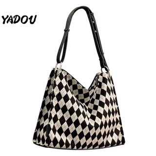 Túi vải YADOU sức chứa lớn họa tiết kim cương đen trắng phong cách cao cấp thời trang cho nữ