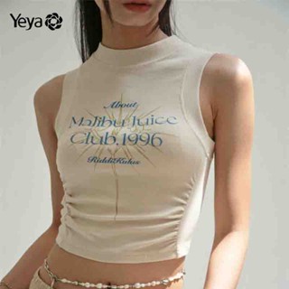 Áo thun sát nách YEYA dáng ngắn xếp nếp in chữ thời trang kiểu Mỹ cho nữ