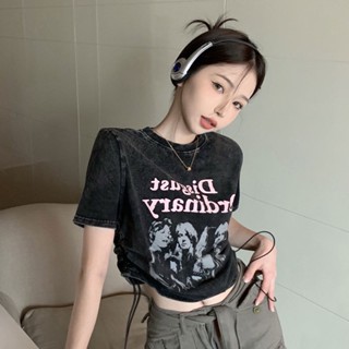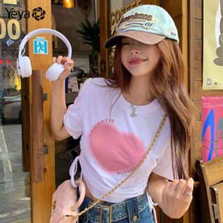 Yeya Áo Thun Dây Rút Ôm Dáng In Họa Tiết Trái Tim Thiết Kế Mới Mùa