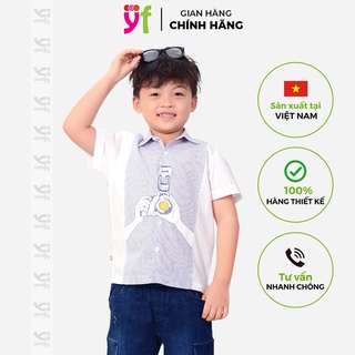 Áo sơ mi bé trai tay ngắn thiết kế YF, thêu hình ngựa, vải cotton mềm mát 0AY502