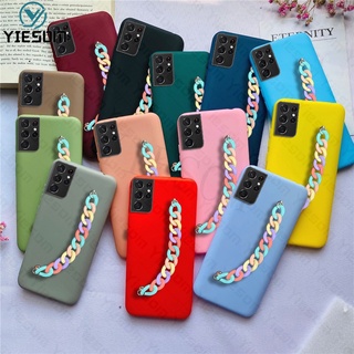 Ốp Điện Thoại TPU Dẻo Màu Sắc Ngọt Ngào Kèm Vòng Đeo Tay Cho Samsung Galaxy S22 S21 Ultra S22 Plus S21FE