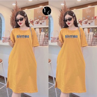 Đầm thun suông bigsize dáng suông xẻ tà form dài cổ tròn 55-80kg YOHOMI keep smile