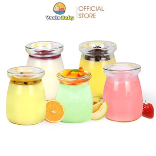 Cốc Đựng Sữa Chua Thủy Tinh Dày Dặn Có Nắp Đậy 100ml YOOTA BABY Cho Bé Ăn Dặm Tiện Lợi