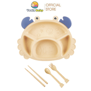 Khay Ăn Dặm Kiểu Nhật Chất Liệu Lúa Mạch Hình Cua Vàng Kèm Thìa Dĩa An Toàn Cho Bé YOOTA BABY
