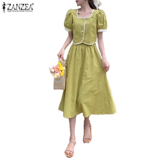 Đầm ZANZEA tay phồng cổ tròn thời trang dành cho nữ