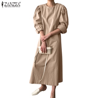 Đầm Baggy Trơn Tay Phồng 3 / 4 ZANZEA Dành Cho Nữ