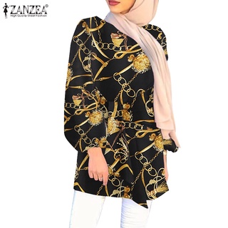 Áo ZANZEA tay dài phồng cổ tròn kiểu cột dây dành cho phụ nữ hồi giáo