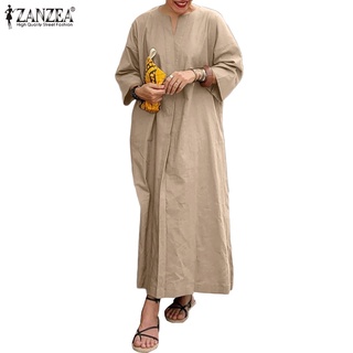 Đầm maxi Zanzea tay dài cổ tròn màu trơn phong cách retro cho phụ nữ Hồi Giáo