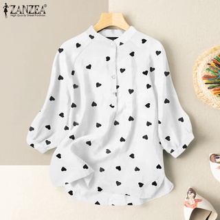 ZANZEA Áo Sơ Mi Cổ Đứng Tay 3/4 Dáng Rộng In Họa Tiết Trái Tim Thời Trang Cho Nữ