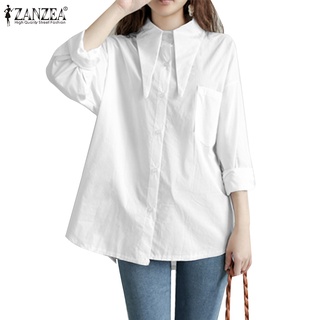 Áo sơ mi ZANZEA tay dài dáng rộng màu trơn phong cách Châu Âu cho nữ