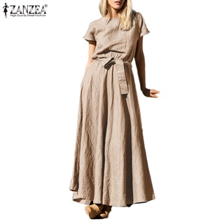 Đầm ZANZEA dáng dài tay ngắn thắt eo phối nút phía sau thời trang cho nữ