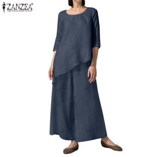 Bộ đồ ZANZEA gồm áo thun tay lỡ cổ tròn và quần dài lưng thun thời trang dành cho bạn nữ