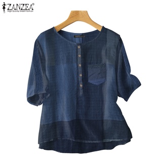 Áo kiểu ZANZEA tay ngắn cổ tròn phong cách Hàn Quốc thời trang cho nữ