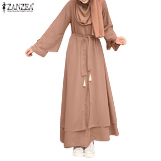 ZANZEA Đầm Maxi Dài Tay Hai Lớp Màu Trơn Phong Cách Hồi Giáo Cho Nữ