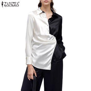 Áo ZANZEA màu trơn tay dài cổ bẻ thiết kế lệch tà phong cách thanh lịch thời trang cho nữ