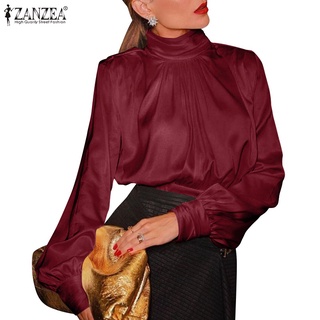 Áo ZANZEA dài tay cổ cao màu trơn phong cách thanh lịch Vintage cho nữ