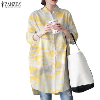 Áo sơ mi ZANZEA dài tay in họa tiết phong cách Hàn Quốc thanh lịch dành cho nữ