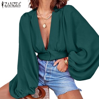 Áo Zanzea tay dài cổ chữ V thời trang quyến rũ cho nữ