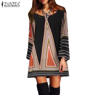 Đầm mini ZANZEA tay dài in họa tiết hình học cổ điển giản dị cho nữ