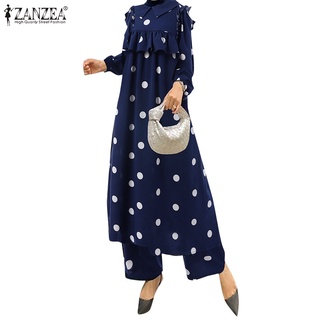 Bộ quần áo ZANZEA thiết kế tay dài dáng rộng họa tiết chấm bi phong cách hồi giáo dành cho nữ