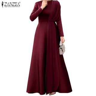 Đầm ZANZEA dạng dài cổ bẻ tay dài thời trang sang trọng cho nữ