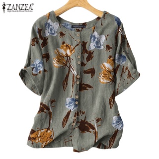 Áo ZANZEA Cổ Tròn Ngắn Tay Dáng Rộng Họa Tiết Hoa Thời Trang Cho Nữ