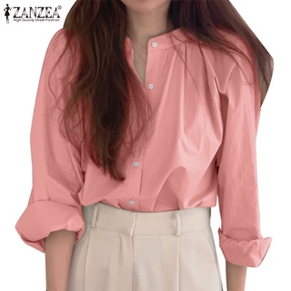 Áo kiểu ZANZEA có ve áo và nút gài tay dài màu trơn đơn giản thời trang phong cách Hàn Quốc cho nữ
