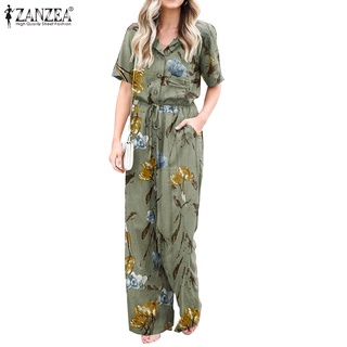 Áo liền quần ZANZEA ngắn tay in hoa phong cách Châu Âu vintage cho nữ