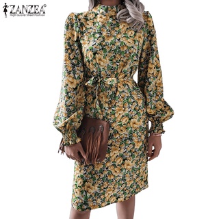 Đầm Midi Zanzea Tay Dài Cổ Giả In Hoa Phong Cách Châu Âu Cho Phụ Nữ