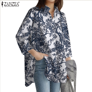 ZANZEA Áo sơ mi tay dài in họa tiết ấm nút dành cho nữ