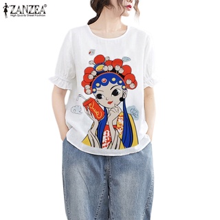 Áo thun Zanzea tay ngắn cổ tròn in họa tiết phong cách cổ điển dành cho nữ