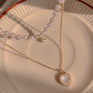 Vòng cổ Hai Lớp Đính Ngọc Trai Hình Trái Tim