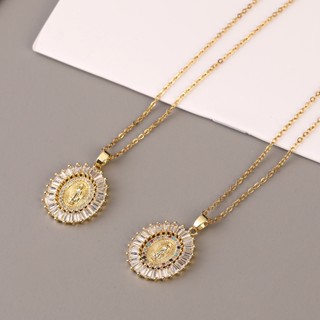 ❤zheting❤ cổ Mặt Hình Thang Đức Mẹ Mary Hình Học Đính Đá Zircon Nhiều Màu Sắc Thời Trang Âu Mỹ