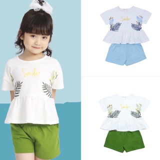 [CHÍNH HÃNG] Bộ quần đùi áo cộc bé gái họa tiết chiếc lá nhún eo ASKD018BTX Zose